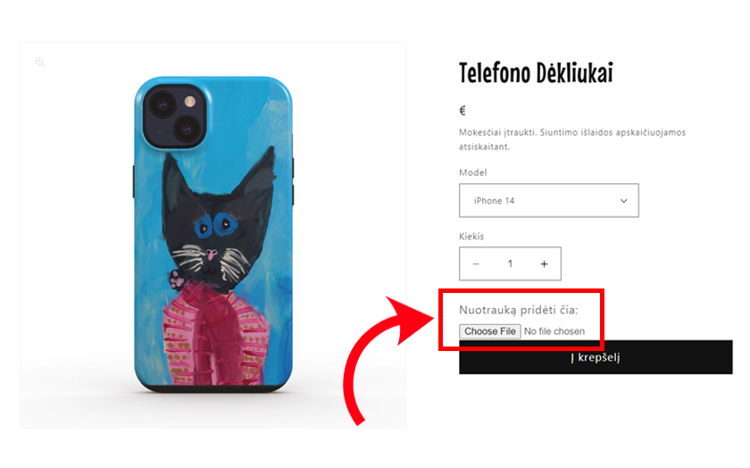 Išsirinkus norimą produktą, užsakyme įkelkite norimą nuotrauką.